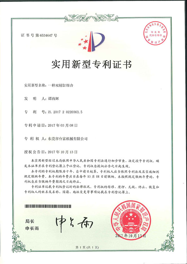 一種雙射缸組合專利證書