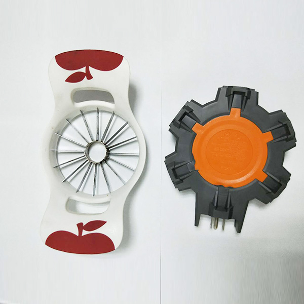1、上模板配置二個上模具,圓盤上配置二個下模具,成型時圓盤做180度正反轉(zhuǎn)交替。即可完成雙色(雙物料)的射出成型(或包覆成型)。